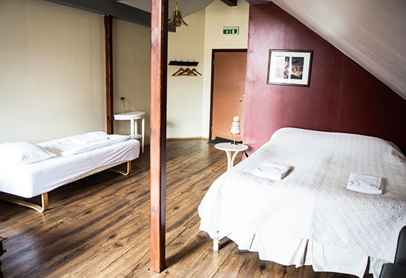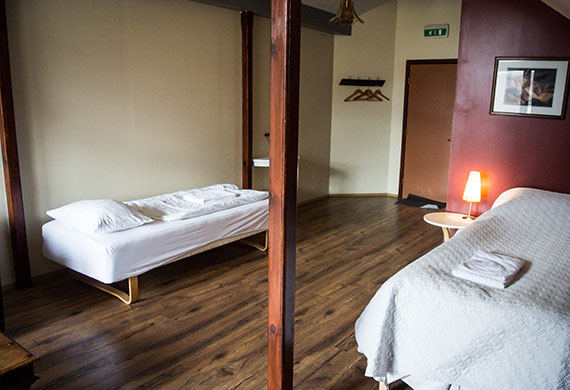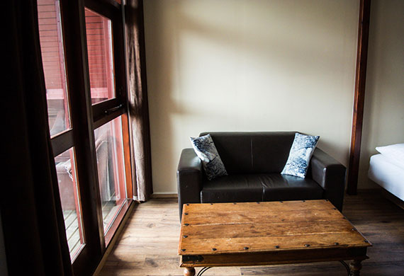 Big room with private bathroom and your own terrace. Chairs and sofa in the rooms and a small working desk. Cattle for coffee and te. Mountain view.